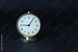 Vintage golden desk watch on black isolated background. Atatürk death anniversary concept idea. Ataturk had died in 10 Kasım 1938 09:05. Selective focus planning