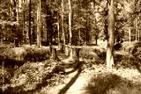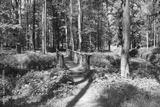Wooden bridge crossing a stream in forrest. Veltrusy. Czech Republic.