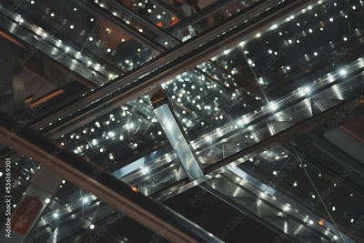 Electric escalators in metro. Moving staircases.