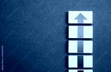 Growth arrow. Go higher for success, development. Build a career and skill grow. Make progress concept. Promotion at work. Set a goal to achieve. Step by step. Self improvement. Upgrade and level up.