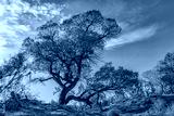 Picturesque turangas (trees from the poplar genus) on an autumn evening