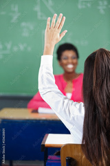 Teenage Girl Raising Hand At Desk