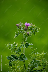 Purple Thistle Silybum marianum in the field on a sunny day.