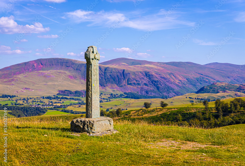 Aerial view of hills around Keswick in Lake District, a region and national park in Cumbria in northwest England