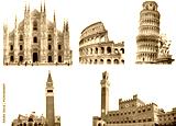 Italian most famous architectural landmarks set for collage. Heritage and architecture of Italy