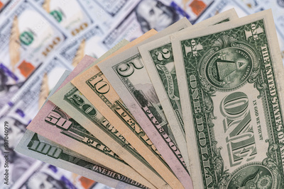 Collected American 1, 2, 5, 10, 20, 50 and 100 dollar bills