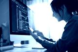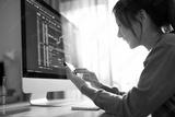 Closeup - Woman is checking Bitcoin price chart on digital exchange on smartphone, cryptocurrency future price action prediction.