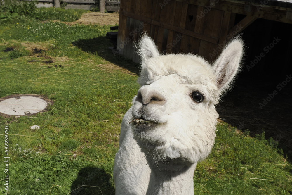 alpaca adorable fluffy portrait looking at you