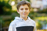 Portrait of preteen school kid boy. Beautiful happy child looking at the camera. Schoolboy smiling. Education concept.