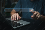 man hand searching browsing for information internet data Technology on computer keyboard notebook.SEO Search Engine Optimization.