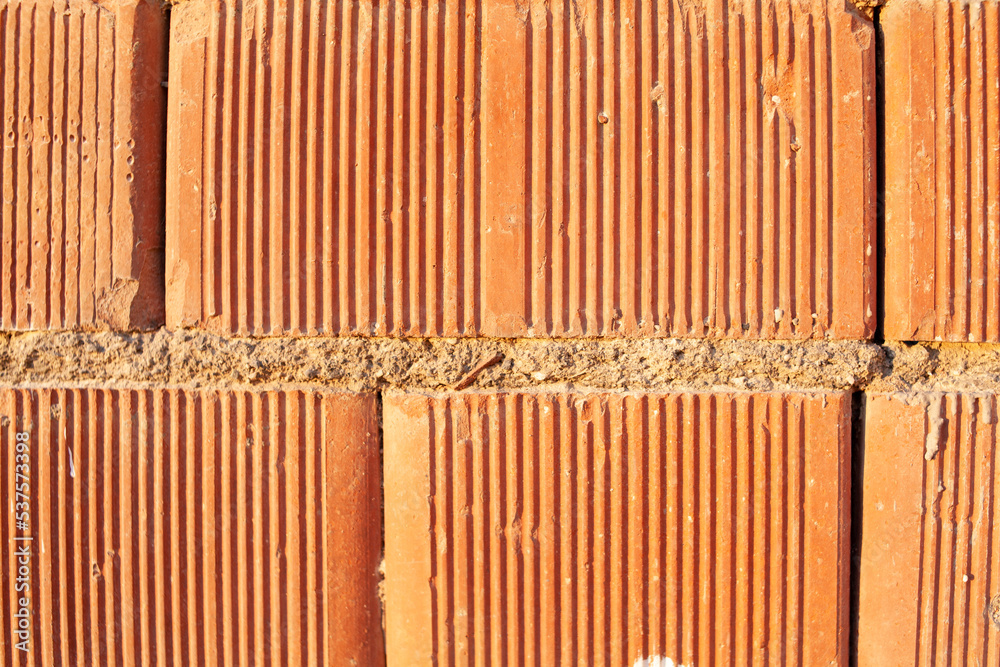 Red ceramic bricks close up. Keramoblock. Red brick wall texture background