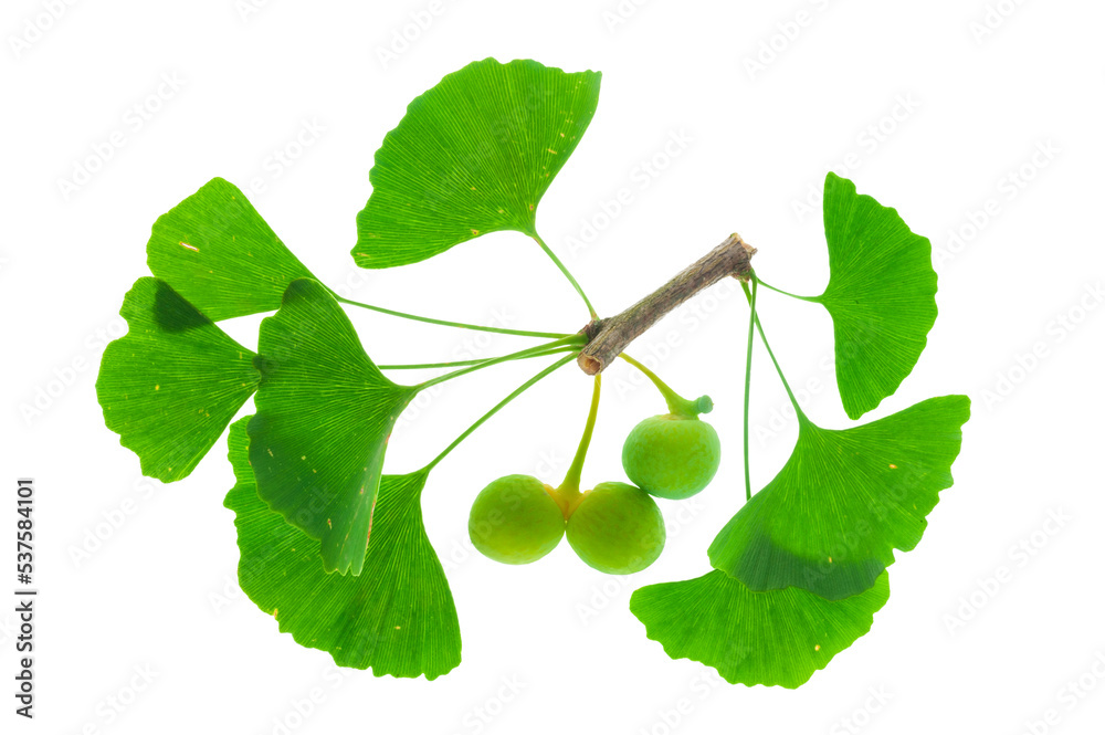 Ginkgo Frucht und Blätter