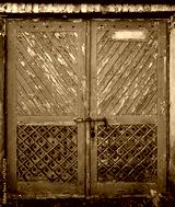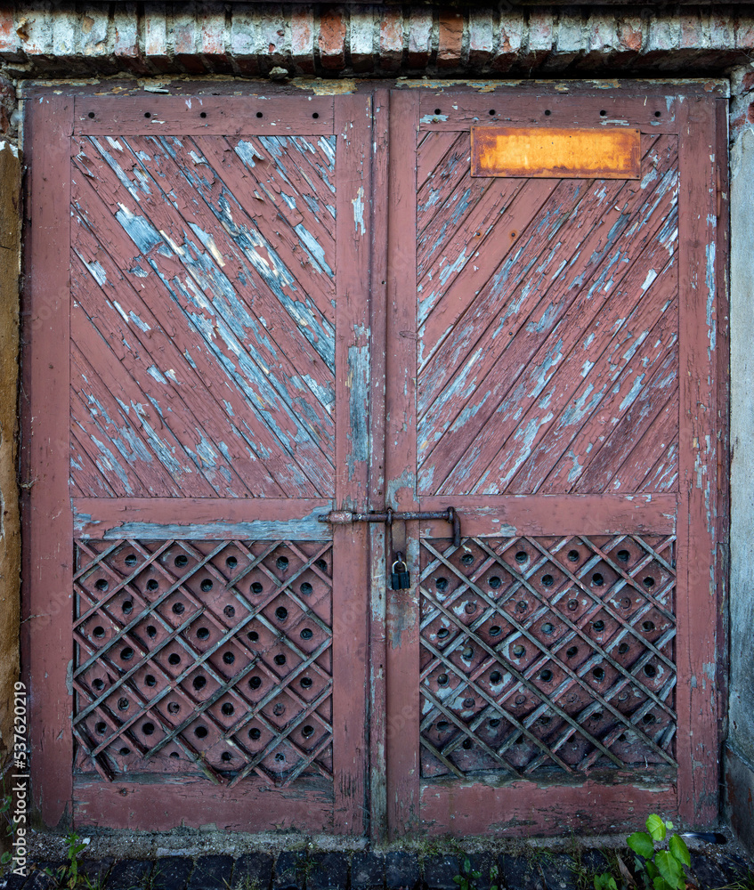 Stare drzwi, tekstura zniszczonego drewna, złuszczona farba.