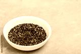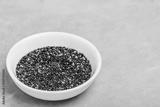 Chia seeds. Organic Dry Black and White Chia Seeds in bowl on gray stone background