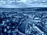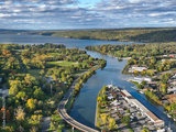 Early afternoon autumn aerial photo view of Ithaca New York.