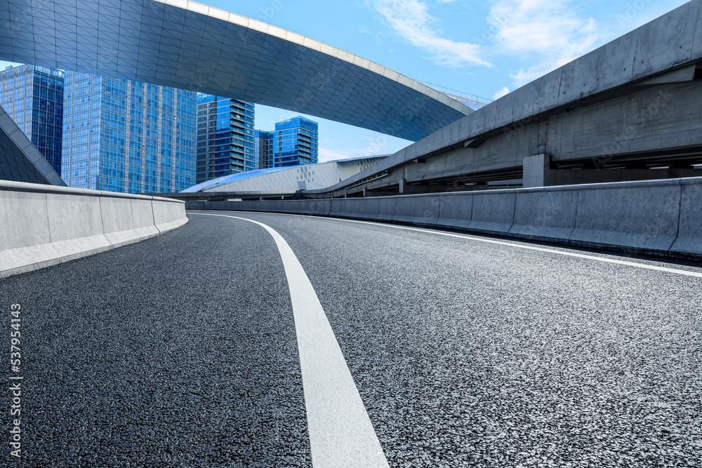 Asphalt highway and city skyline with modern buildings scenery in Beijing, China.