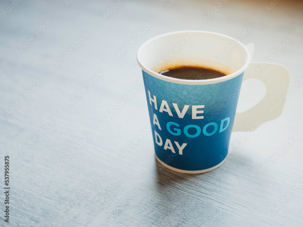 Hot coffee in Paper Cup Have a Good day Positive thinking quote