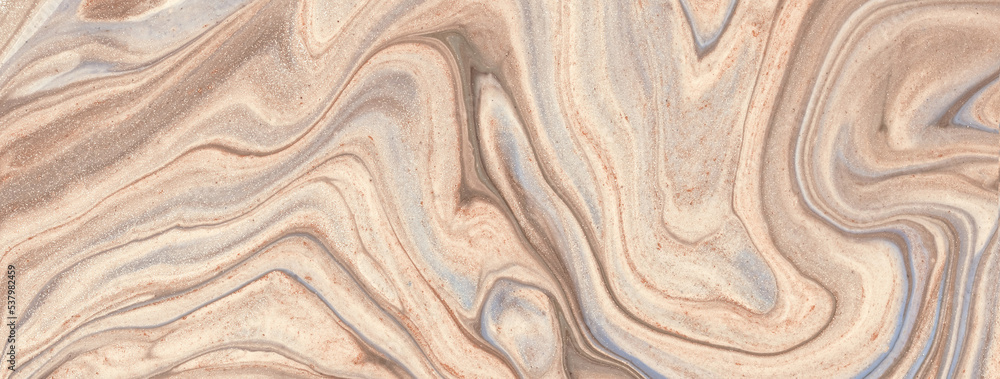 Abstract fluid art background light blue and beige colors. Liquid marble. Acrylic painting with brown gradient.