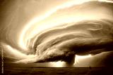 dramatic and powerful tornado. Lightning thunderstorm flash over the night sky. Concept on topic weather, cataclysms (hurricane, Typhoon, tornado, storm). Stormy Landscape.