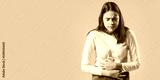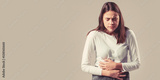 Woman touching his stomach. Stomach pain and others stomach disease concept.Girl having a stomachache
