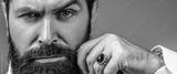 Portrait of bearded male in white shirt. Close up of handsome beard hipster elegant male