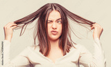 Bad hairs day. Frustrated woman having a bad hair. Woman having a bad hair, her hair is messy and tangled