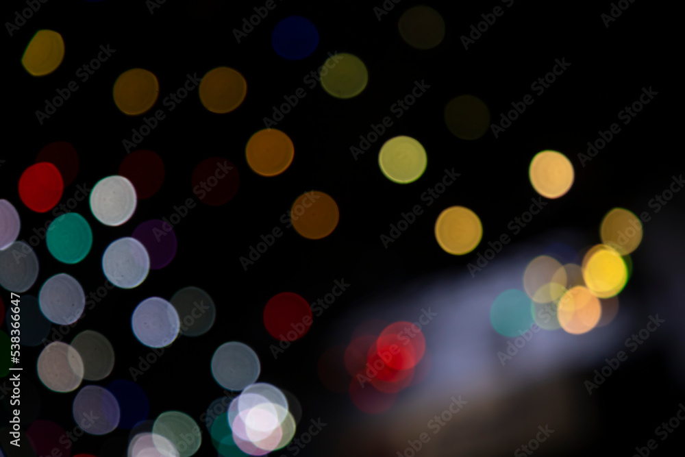 Colorful Defocus Abstract bokeh light effects on the night black background texture