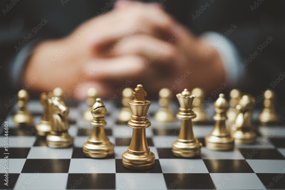 Strategic planning and goals success business idea. Businessman looking at chess at the board.