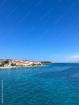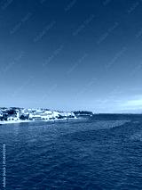 Blue sea horizon, blue sky, natural colors, pure sea water surface