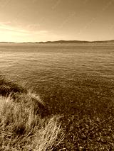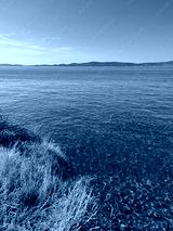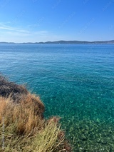 Blue sea horizon, blue sky, natural colors, pure sea water surface
