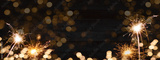 happy new year, Silvester, New Year's Eve 2025 Party, New year, new years eve, Fireworks, Firework celebration background banner, new year card - Sparklers and bokeh lights on rustic black wooden wall
