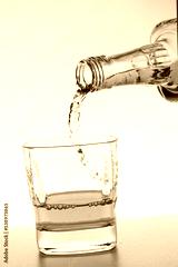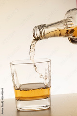 pouring bourbon whiskey into a glass close-up white background vertical photo