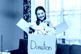 Donation Concept. Happy volunteer asian woman holding a Donate Box with full of toy doll, She working at charity center.