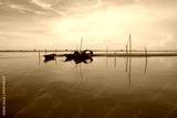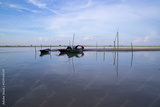 Traditional Wooden Fishing boat landscape view by Padma river in Bangladesh