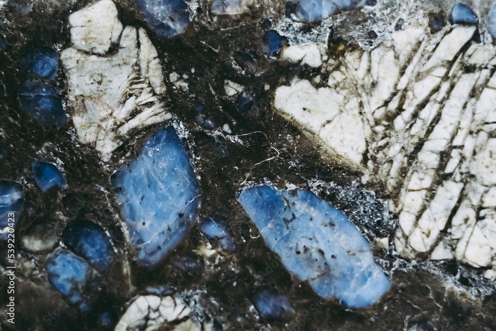 Arrière plan macro de texture d'une pierre semi-précieuse glaucophane - Espace coloré abstrait