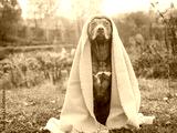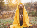 Lovable, pretty dog sitting on the grass against the background of trees. Autumn, sunny day. Close-up, outdoors. Day light. Concept of care, education, obedience training and raising pet