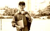 Portrait of Asian male student having fun at school