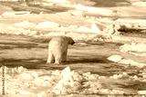 Polar bear (Ursus maritimus) going on the pack ice north of Spitsbergen Island, Svalbard