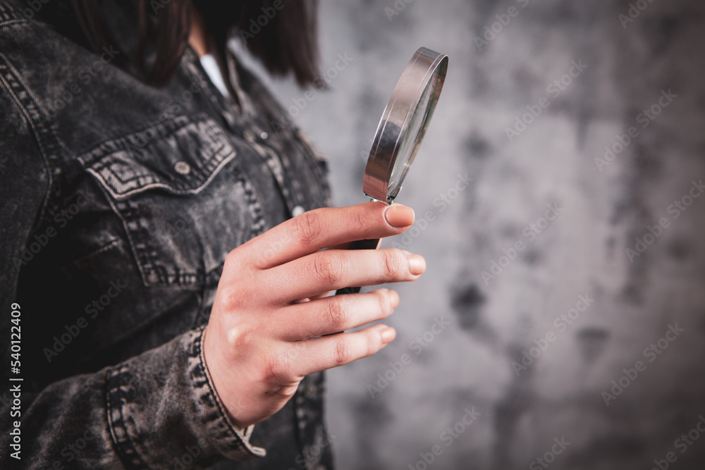 young woman holding a magnifying glass