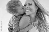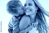 Kiss, mother and child with smile in a park for relax, adventure and peace together in summer. Face of a happy, thinking and young mom with her kid kissing and hugging her in nature with a piggyback