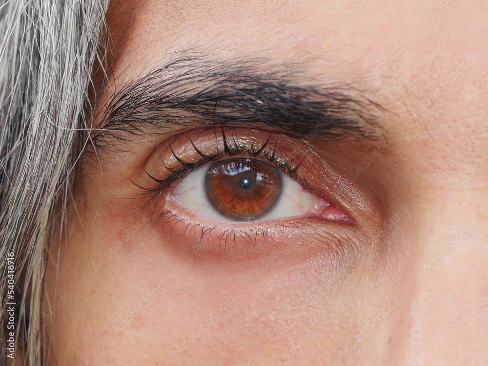 Right amber colored eye looking at camera