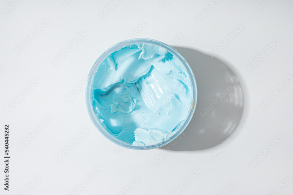 Top view of blue cream boby sutter in jar cometic products