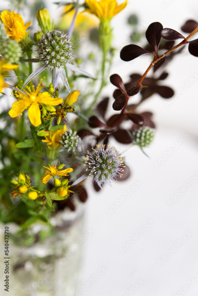 Summer blooming delicate flowers, rich bright bouquet and delicate floral card