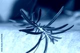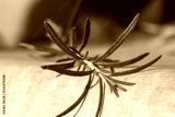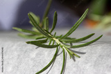 Macro abstract texture view of a sprig of rosemary (salvia rosmarinus) herb on a defocused white parchment paper background
