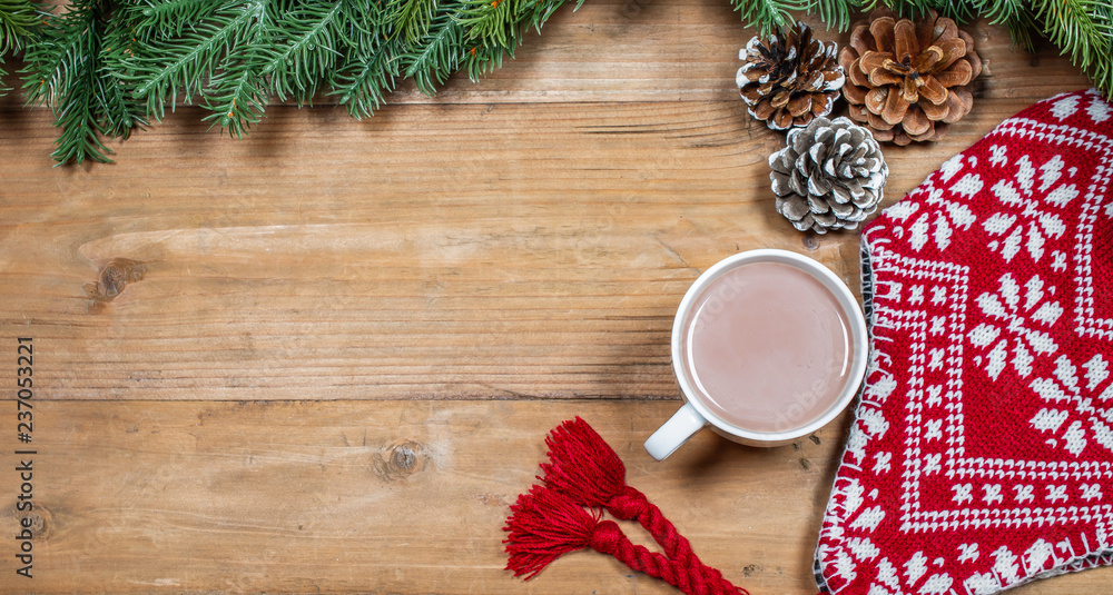 Dark green Christmas background with gift box, baubles, star, snowflakes. Happy New Year banner, Merry Christmas greeting card template.