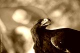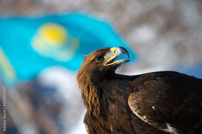 Golden eagle on the background of the flag of the Republic of Kazakhstan