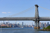 Looking north at Brooklyn side of the Williamsburg bridge and the the skyline of Midtown Manhattan, NYC