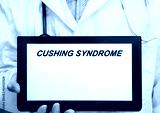 Cushing Syndrome. Doctor with rare or orphan disease text on tablet screen Cushing Syndrome