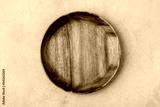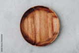 Wooden plate. Empty wooden plate, plate on gray stone concrete background, top view.