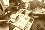 Financial analyst analyzes businessman investment consultant analyzing company financial report balance sheet statement working with documents graphs. Concept picture for stock market, office, tax